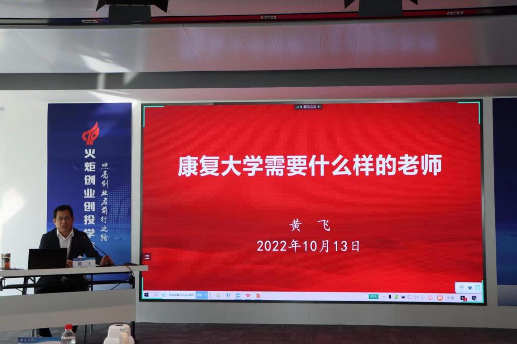 康復(fù)大學(xué)(籌)領(lǐng)導(dǎo)小組成員、臨時黨委委員黃飛作《康復(fù)大學(xué)需要什么樣的老師》輔導(dǎo)報告。黃飛結(jié)合世界一流大學(xué)建設(shè),根據(jù)康復(fù)大學(xué)(籌)整體定位,重點講述了康復(fù)大學(xué)的教師應(yīng)該具備的綜合素養(yǎng),教導(dǎo)全體老師要努力成為一流人才、建設(shè)一流學(xué)科、培養(yǎng)一流學(xué)生、創(chuàng)造一流成果,要做有理想信念、有道德情操、有扎實學(xué)識、有仁愛之心的新時代“四有”好老師。