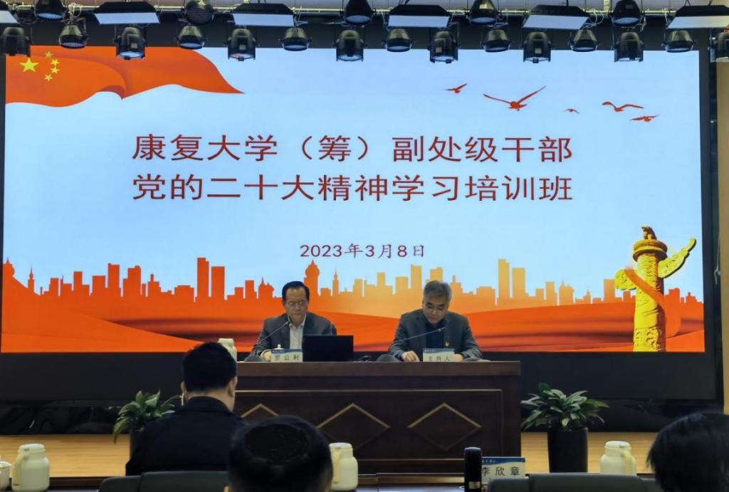 3月8日-15日,康復(fù)大學(xué)(籌)臨時黨委舉辦了副處級干部黨的二十大精神學(xué)習培訓(xùn)班。校領(lǐng)導(dǎo)李欣章、黃飛、王偉、姜宏和60多名教職工黨員共同參加了專題輔導(dǎo)講座。