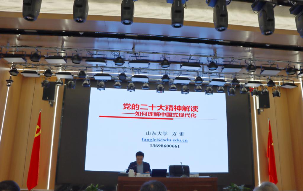 知名教授解讀中國式現(xiàn)代化。9日下午,山東大學(xué)人文社科高等研究院院長方雷教授作《如何理解中國式現(xiàn)代化》專題講座。方雷教授從中國式現(xiàn)代化的本質(zhì)要求與重大原則、中國式現(xiàn)代化的意蘊、新時代中國式現(xiàn)代化的現(xiàn)實基礎(chǔ)、中國式現(xiàn)代化的結(jié)構(gòu)性要素、中國式現(xiàn)代化的策略性路徑、中國式現(xiàn)代化的規(guī)范性價值等方面為全體黨員從理論層面深入闡釋了二十大報告中的現(xiàn)代化問題。