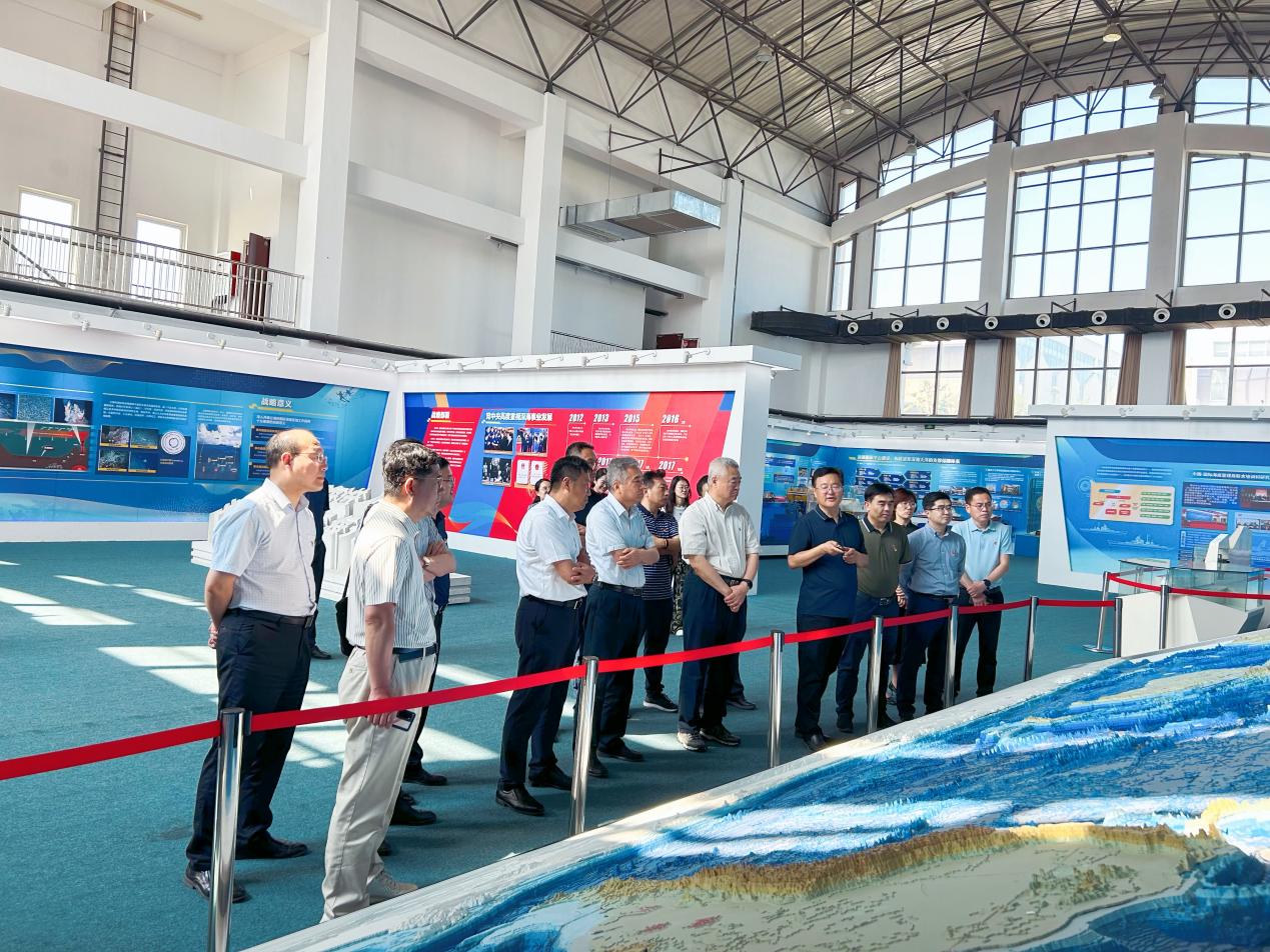 調研組一行在青島藍谷先后參觀了嶗山實驗室和國家深?;?。在嶗山實驗室,實地參觀了超算大樓二樓展廳、海洋觀測與探測聯合實驗室,了解了嶗山實驗室的建設發展歷程、創新科研體系、研究方向、主要成果等方面的基本情況。在國家深?;?,主要參觀了“深海之路”成就館,并登上了“深海一號”和“蛟龍號”,聽取了我國深海環境探測、深海資源開發的戰略布局情況,詳細了解了“深海一號”的船舶結構及“蛟龍號”載人潛水器的創新研發、成果轉化、人才隊伍建設等情況。