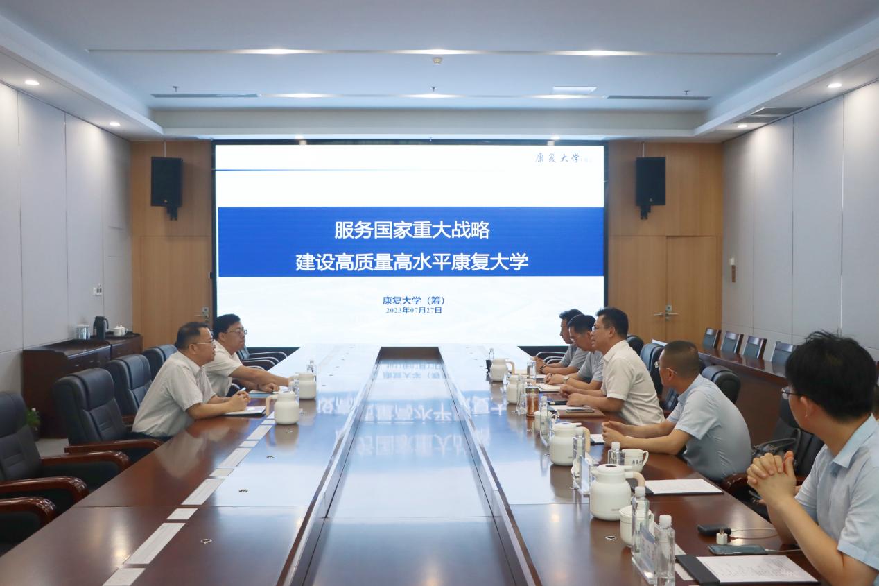 7月27日下午,人民衛生出版社黨委常委、董事、總編輯杜賢一行來我校調研座談,康復大學(籌)領導小組成員、臨時黨委委員黃飛出席并主持座談會。