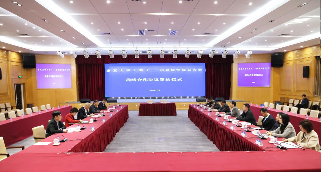 3月25日上午,我校與北京航空航天大學(xué)戰(zhàn)略合作協(xié)議簽約儀式在北京航空航天大學(xué)如心會(huì)議中心舉行。北京航空航天大學(xué)校長(zhǎng)、中國(guó)工程院院士王云鵬,副校長(zhǎng)呂衛(wèi)鋒、呂金虎出席簽約儀式。康復(fù)大學(xué)(籌)領(lǐng)導(dǎo)小組副組長(zhǎng)、中國(guó)工程院院士董爾丹出席簽約儀式并致辭,校領(lǐng)導(dǎo)王偉、姜宏出席簽約儀式。呂金虎主持簽約儀式。