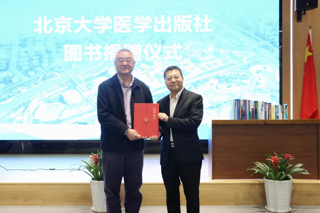 本次捐贈的圖書共計1622冊,董爾丹代表學校接受了捐贈圖書,并向北京大學醫學出版社頒發了圖書捐贈證書。