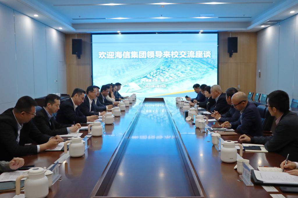 4月29日上午,海信集團黨委書記、董事長賈少謙,高級副總裁陳維強,副總裁吳大鵬等一行來校座談交流。康復大學(籌)領導小組副組長、中國工程院院士董爾丹,臨時黨委副書記、領導小組常務副組長王偉,臨時黨委委員、領導小組成員姜宏、劉奇跡參加座談會。