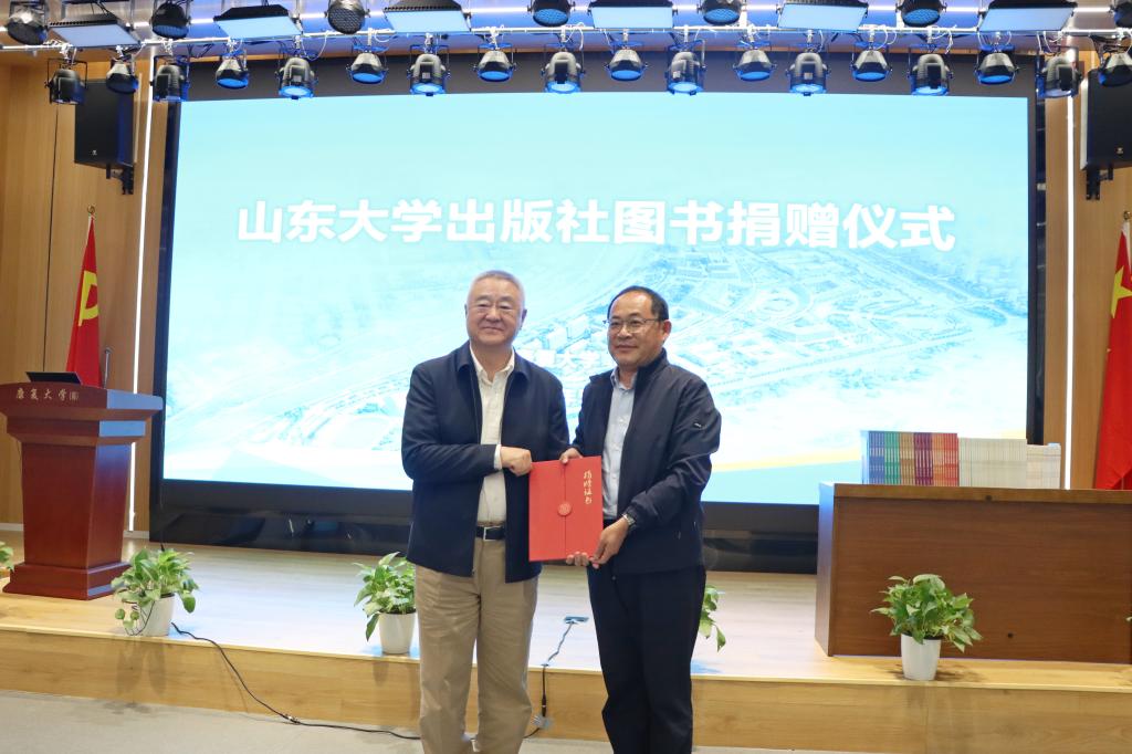 5月17日上午,山東大學出版社圖書捐贈儀式在學校106會議室舉行。山大圖書期刊出版黨委書記、山東大學出版社社長陳斌,山東大學出版社副社長、醫學分社社長徐翔,山東山大圖書有限公司總經理陳海偉參加會議,康復大學(籌)領導小組副組長、中國工程院院士董爾丹,臨時黨委委員、領導小組成員劉奇跡出席捐贈儀式。