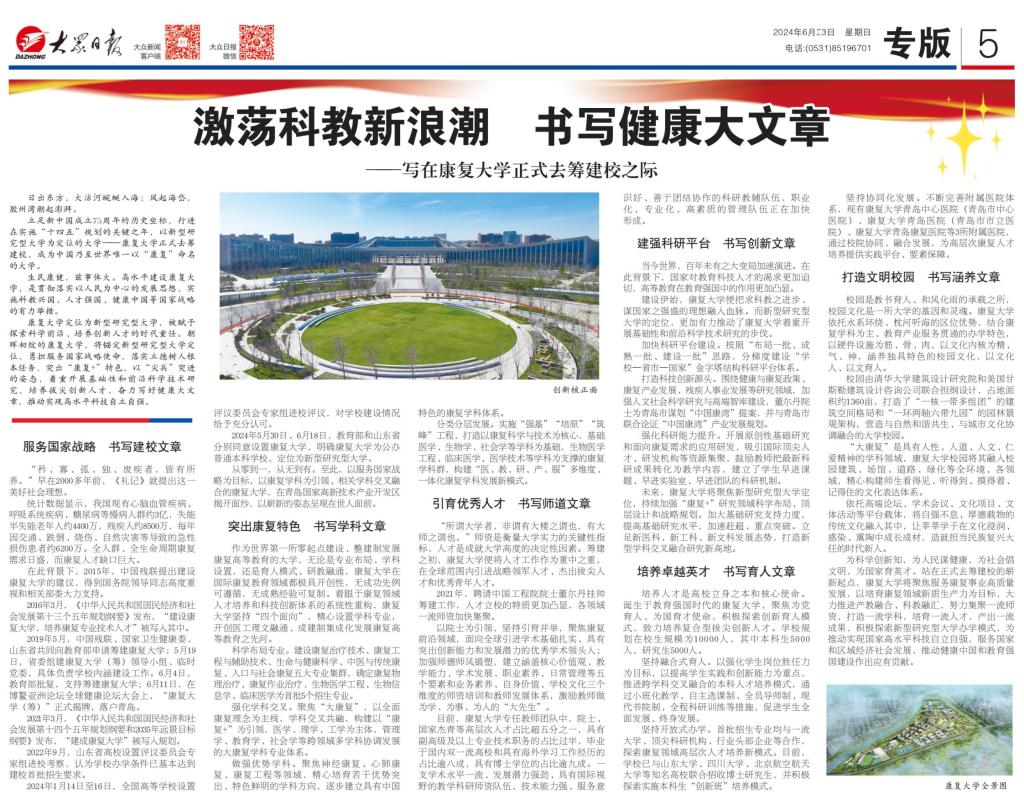 激蕩科教新浪潮 書寫健康大文章 ——寫在康復大學正式去籌建校之際