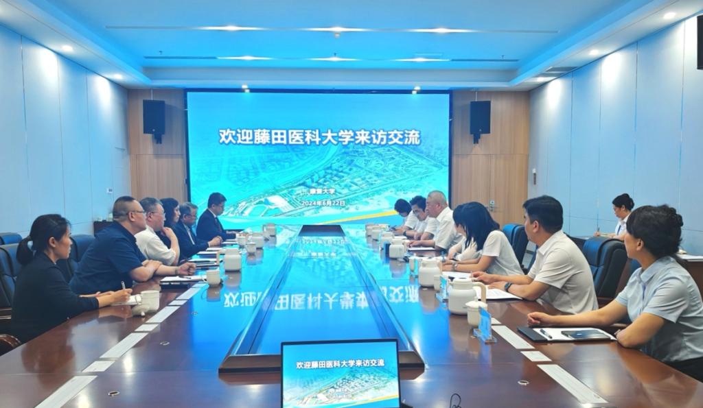 6月22日,日本藤田醫(yī)科大學理事長星長清隆、康復科教授才藤榮一一行6人來校交流,校領(lǐng)導董爾丹、姜宏出席座談會。