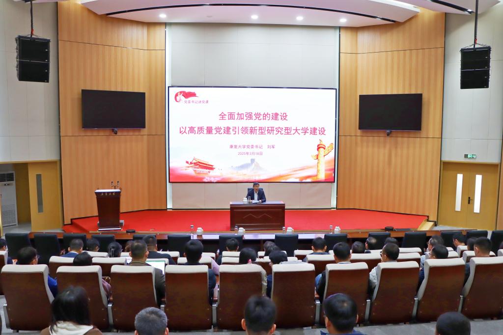3月18日,為進一步統一思想、凝心聚力,堅定理想信念,強化黨員責任擔當和主人翁意識,康復大學黨委書記劉軍以“全面加強黨的建設,以高質量黨建引領新型研究型大學建設”為題為全校160余名黨員講授了一堂鮮活而深刻的黨課。