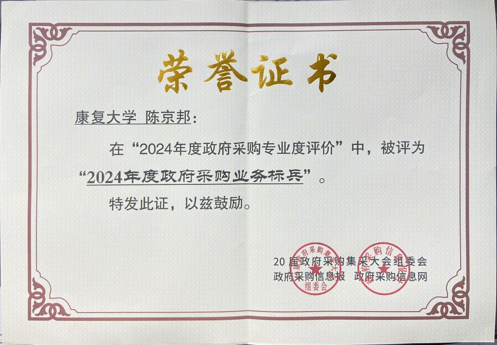 2025年3月19日至3月21日,“20屆政府采購集采大會”在北京全國人大會議中心召開。會議表彰了政府采購領域中涌現出的先進集體和先進個人,學校榮獲“2024年度政府采購先進高?!?,資產與實驗室管理處陳京邦獲“2024年度政府采購業務標兵”。學校已連續兩年獲得此獎項。