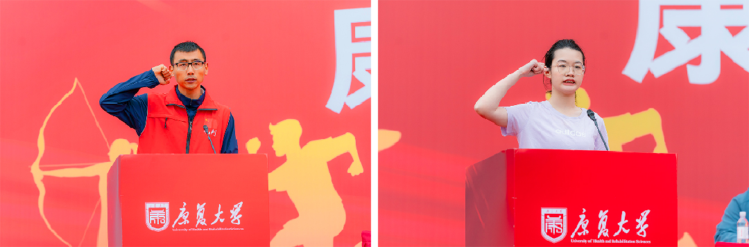 運(yùn)動(dòng)會(huì)總裁判長張曉東老師、運(yùn)動(dòng)員代表譚彤欣同學(xué)先后宣誓。