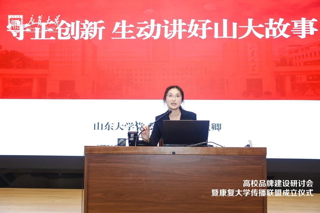 山東大學黨委宣傳部車慧卿老師以《守正創新生動講好山大故事》為題,從緊扣重大節點、唱響時代主旋律,堅持主題先行、持續壯大宣傳聲勢,聚力融媒出圈、強化品牌辨識度,激發聯動活力、放大協同傳播效應四個方面入手,結合學校內容策劃的實際案例,講述了山東大學如何講好“山大故事”。