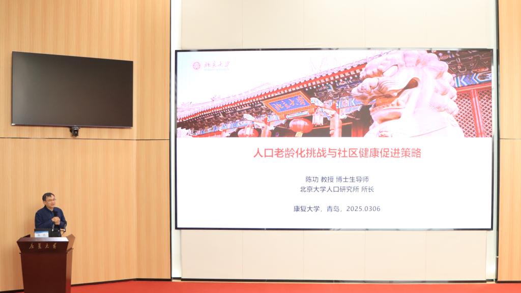 2025年3月6日,北京大學人口研究所所長、北京大學老年學研究所所長、中國老齡事業發展研究中心主任陳功教授來校交流訪問,并做題為“人口老齡化挑戰與社區健康促進策略”的學術報告。副校長劉奇跡教授主持報告。