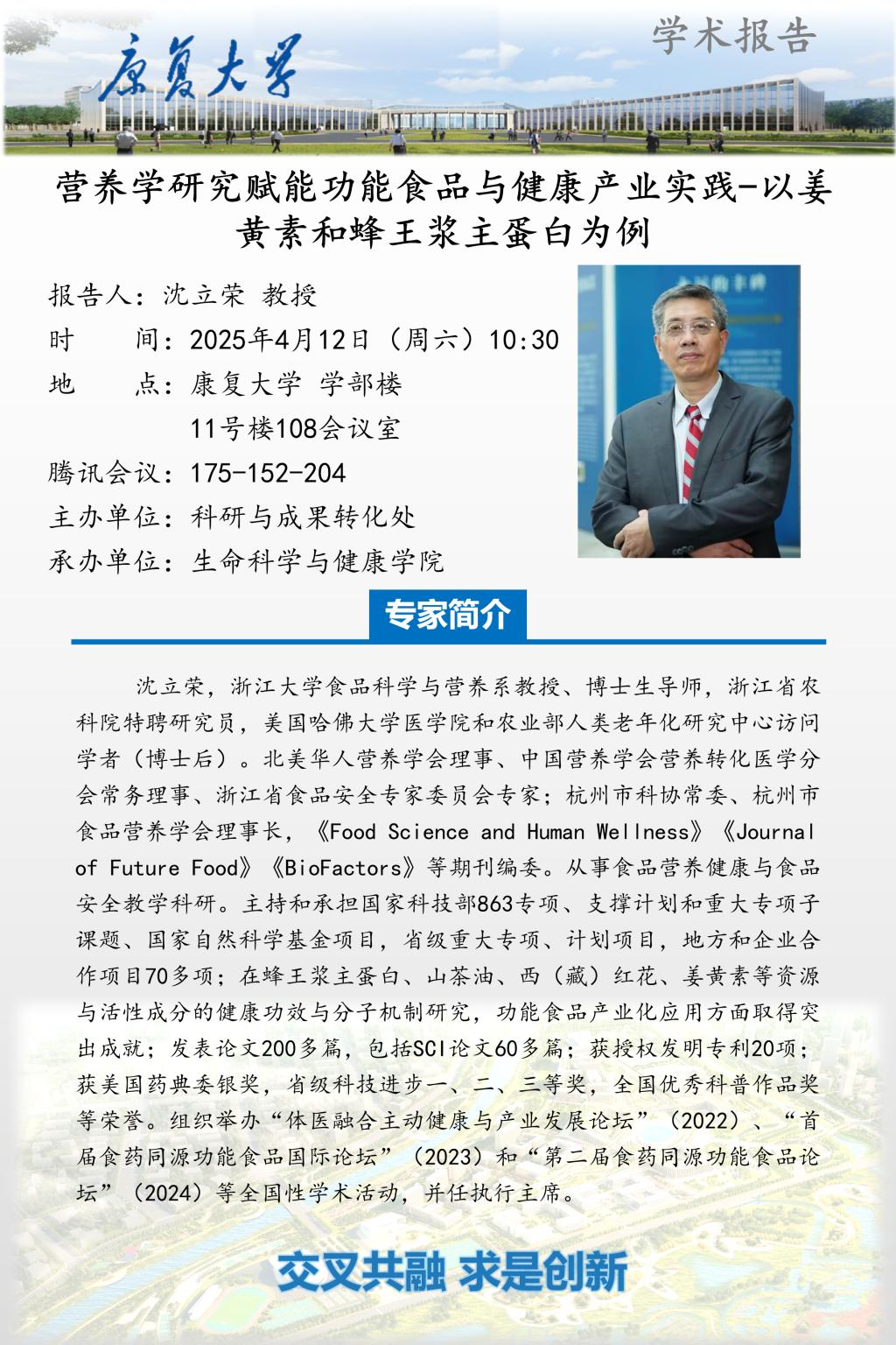 學術報告:營養學研究賦能功能食品與健康產業實踐——以姜黃素和蜂王漿主蛋白為例
