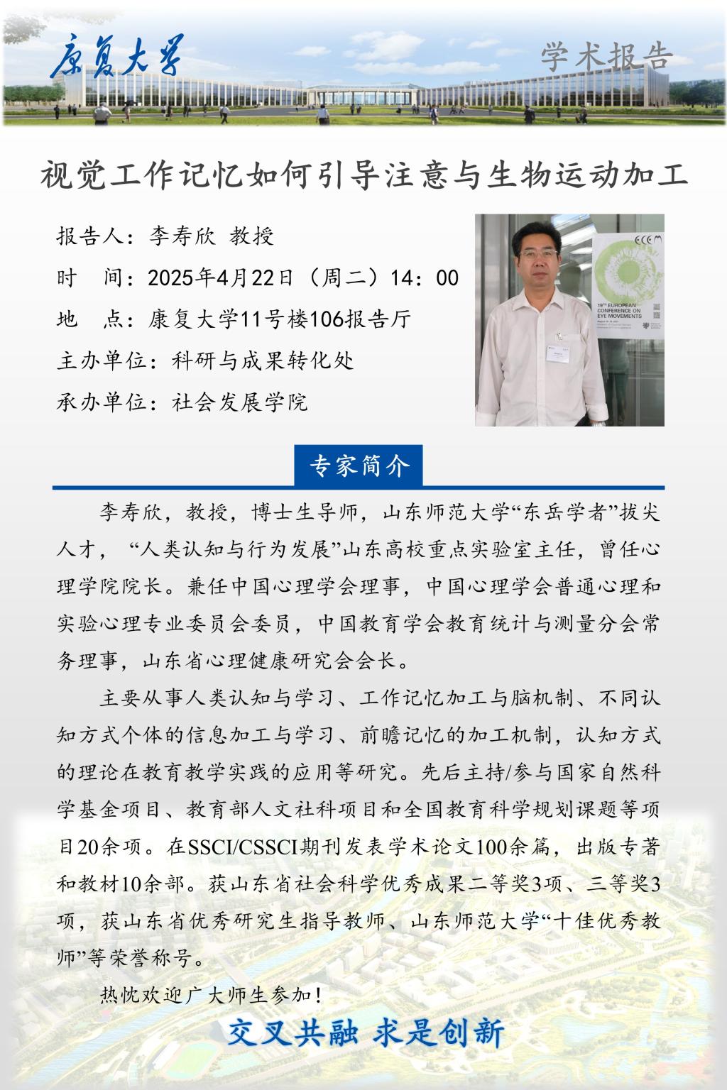 學(xué)術(shù)報告:視覺工作記憶如何引導(dǎo)注意與生物運(yùn)動加工