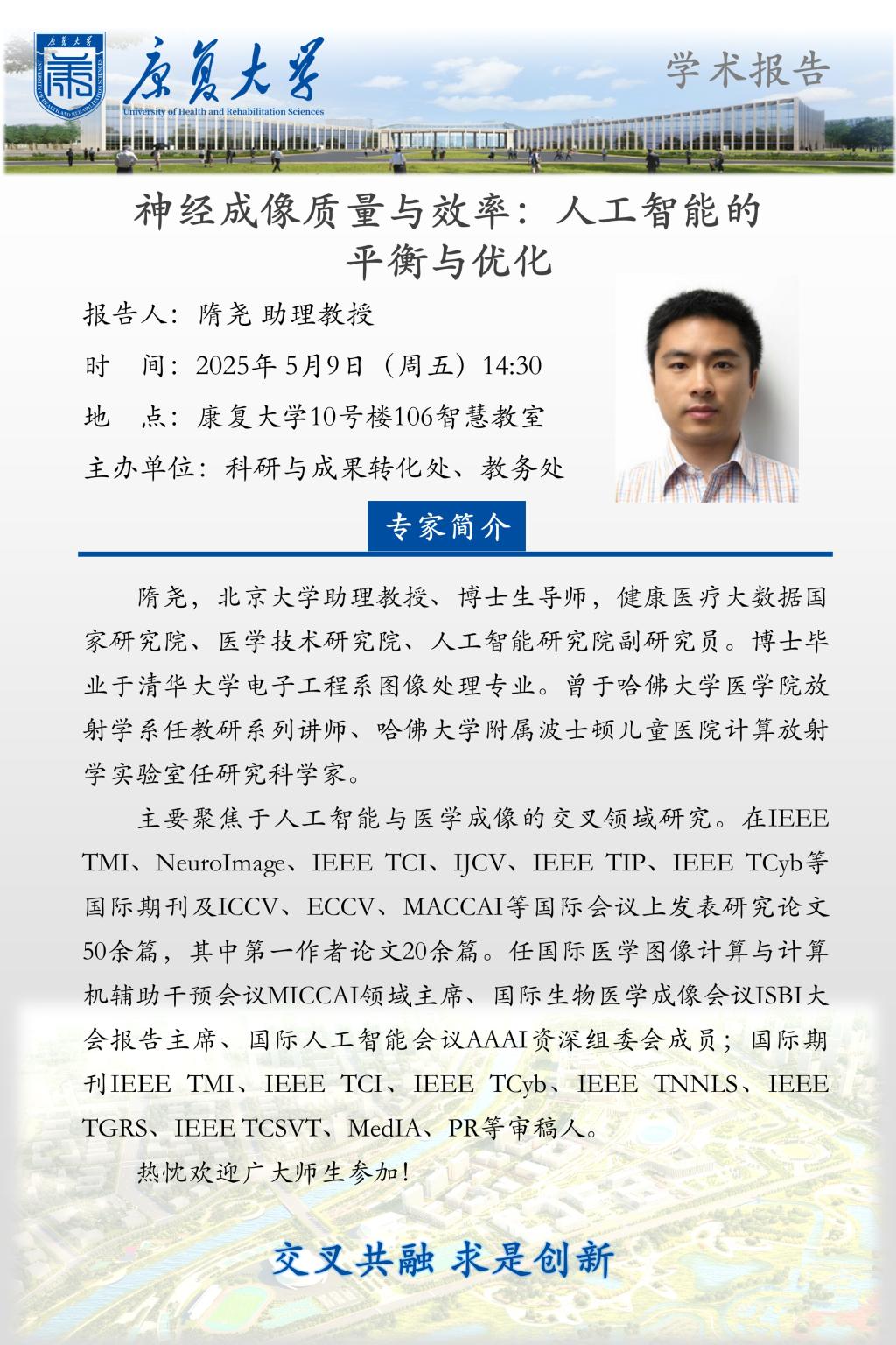 【學術報告】神經成像質量與效率:人工智能的平衡與優化