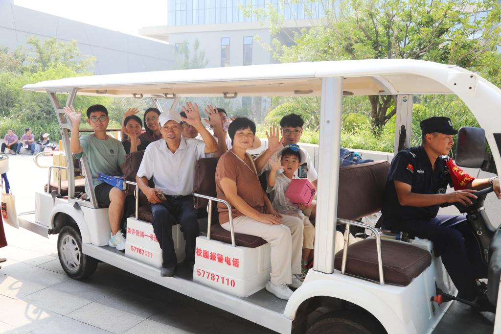 為保障迎新工作順利開展,學校組建了由114名教師和29名學生組成的迎新志愿者隊伍,為新生提供“一站式”服務。學校在芳草園設置迎新接待點,志愿者們以飽滿的熱情迎接新生、積極協(xié)助搬運行李,答疑解惑,并引導新生辦理報到手續(xù)、領取物資、前往宿舍。校內還設置了從迎新點直達宿舍的擺渡車,打通新生報到的“最后一公里”。