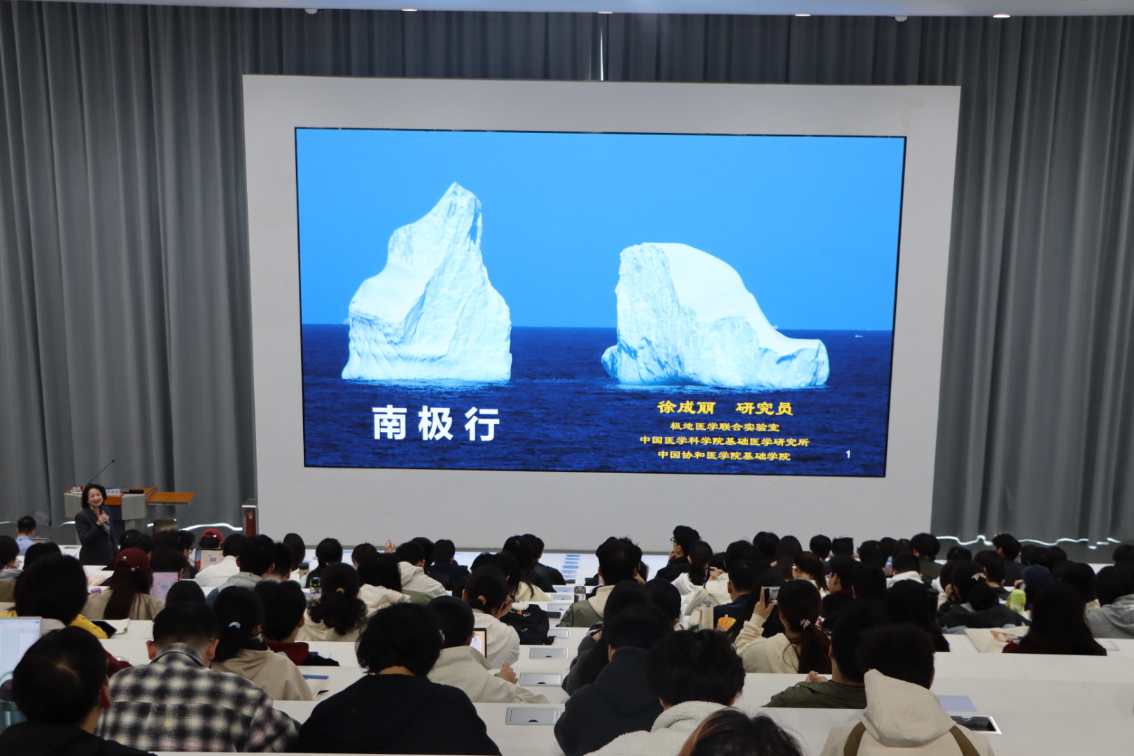 徐成麗教授的報告題目是“極端環境康復:中國南極科學考察與南極醫學研究”。徐教授以中國南極科學考察的發展歷程為切入點,借助大量珍貴圖片,生動再現了南極科考的壯闊場景。她用一個個引人入勝的小故事,深入淺出地講述了我國自20世紀80年代開啟南極考察征程以來,所取得的非凡成就以及面臨的重重挑戰,分析了南極極端環境對人體健康的多維度挑戰,從生理到心理層面全面剖析低溫對人體組織的損傷、長期隔絕環境引發的心理應激反應等問題。同時,她著重介紹了目前在極端環境下人體康復機制的研究成果與前沿探索方向,為未來極地科考人員的健康保障提供了科學指引。
