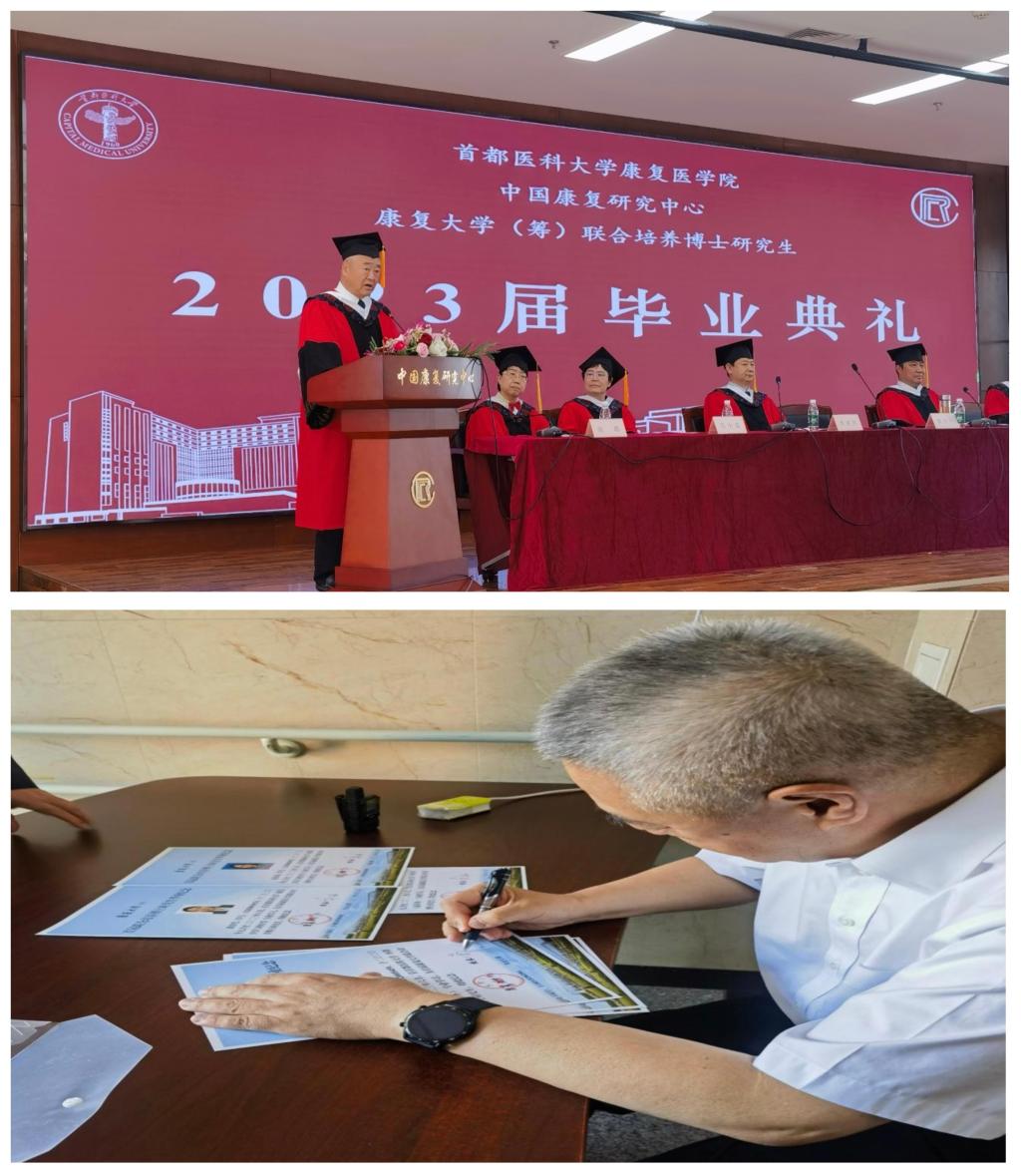 6月2日上午,“歲月崢嶸,未來可期”——首都醫科大學康復醫學院暨康復大學(籌)首屆聯合培養博士研究生畢業典禮,在北京中國康復醫學研究中心舉行。校領導董爾丹、李欣章等出席。畢業典禮由中國康復科學所所長、中國康復研究中心黨委副書記、康復大學(籌)領導小組成員、臨時黨委委員廖利民主持。