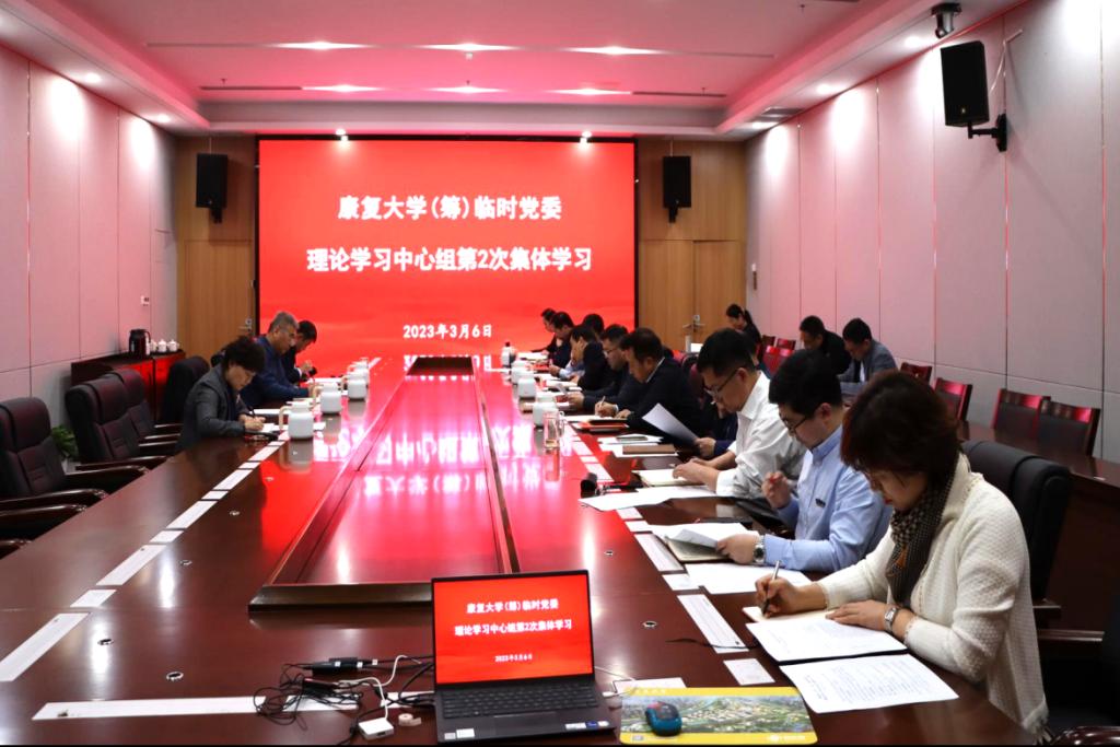 2023年3月6日下午,學校召開黨委理論學習中心組(擴大)學習會議,深入學習了中國共產黨第二十屆中央委員會第二次全體會議公報和習近平在中央黨校建校90周年慶祝大會暨2023年春季學期開學典禮上、中共中央政治局第三次集體學習時的重要講話精神。康復大學(籌)領導小組常務副組長、臨時黨委副書記李欣章,領導小組成員、臨時黨委委員王偉、姜宏出席會議,各部門、各院(部)負責人參加會議。