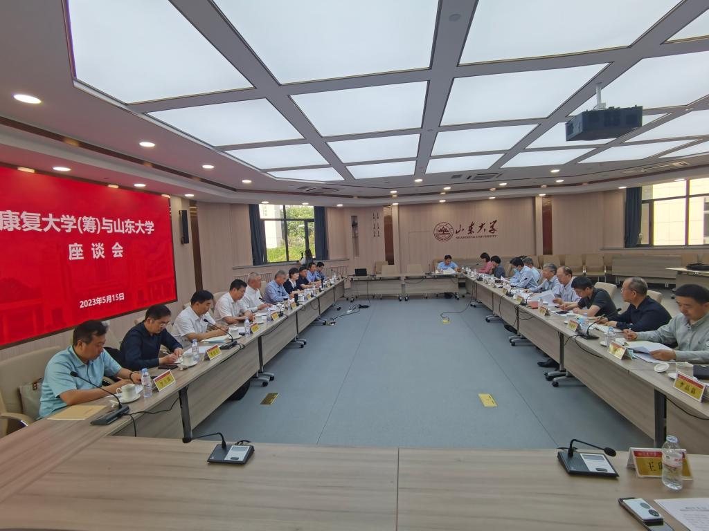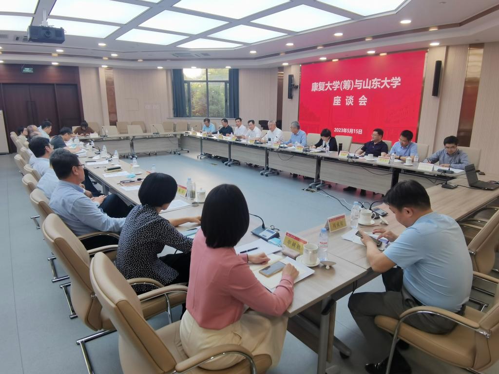 5月15日下午,康復大學(籌)領導小組董爾丹、李欣章、黃飛、姜宏及有關部門負責人赴山東大學學習交流。中國工程院院士、山東大學校長李術才、黨委副書記張永兵及相關部門負責同志參加座談。