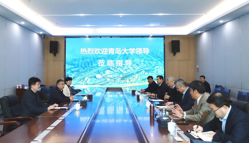 2022年10月10日,青島大學(xué)黨委書記胡金焱一行赴康復(fù)大學(xué)(籌)考察交流。中國工程院院士、康復(fù)大學(xué)(籌)領(lǐng)導(dǎo)小組副組長董爾丹,康復(fù)大學(xué)(籌)領(lǐng)導(dǎo)小組常務(wù)副組長、臨時(shí)黨委副書記李欣章,臨時(shí)黨委委員黃飛、王偉、姜宏參加活動(dòng)。