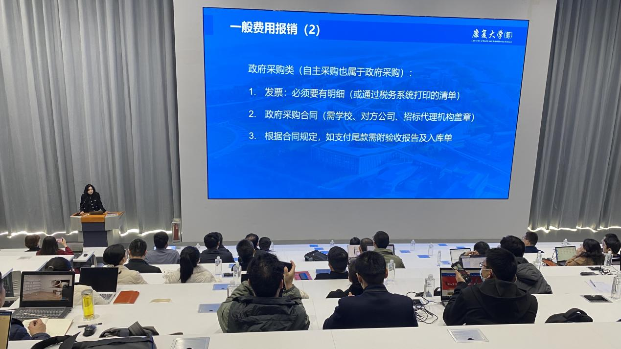 為認(rèn)真貫徹落實(shí)教育部《高等學(xué)校財(cái)務(wù)制度(財(cái)教〔2022〕128號(hào))》和教育廳《關(guān)于加強(qiáng)高等學(xué)校財(cái)務(wù)治理的意見(jiàn)(魯教財(cái)字〔2021〕14 號(hào))》等文件的要求,全面提升康復(fù)大學(xué)(籌)財(cái)務(wù)管理工作現(xiàn)代化水平,學(xué)校綜合財(cái)務(wù)管理平臺(tái)近日上線(xiàn)試運(yùn)行。為方便教職工熟悉平臺(tái)業(yè)務(wù),綜合財(cái)務(wù)管理平臺(tái)專(zhuān)題培訓(xùn)會(huì)議于3月9日上午在學(xué)校報(bào)告廳舉行。康復(fù)大學(xué)(籌)領(lǐng)導(dǎo)小組成員、臨時(shí)黨委委員王偉出席會(huì)議,各部門(mén)負(fù)責(zé)人和項(xiàng)目負(fù)責(zé)人及經(jīng)辦人參加會(huì)議。