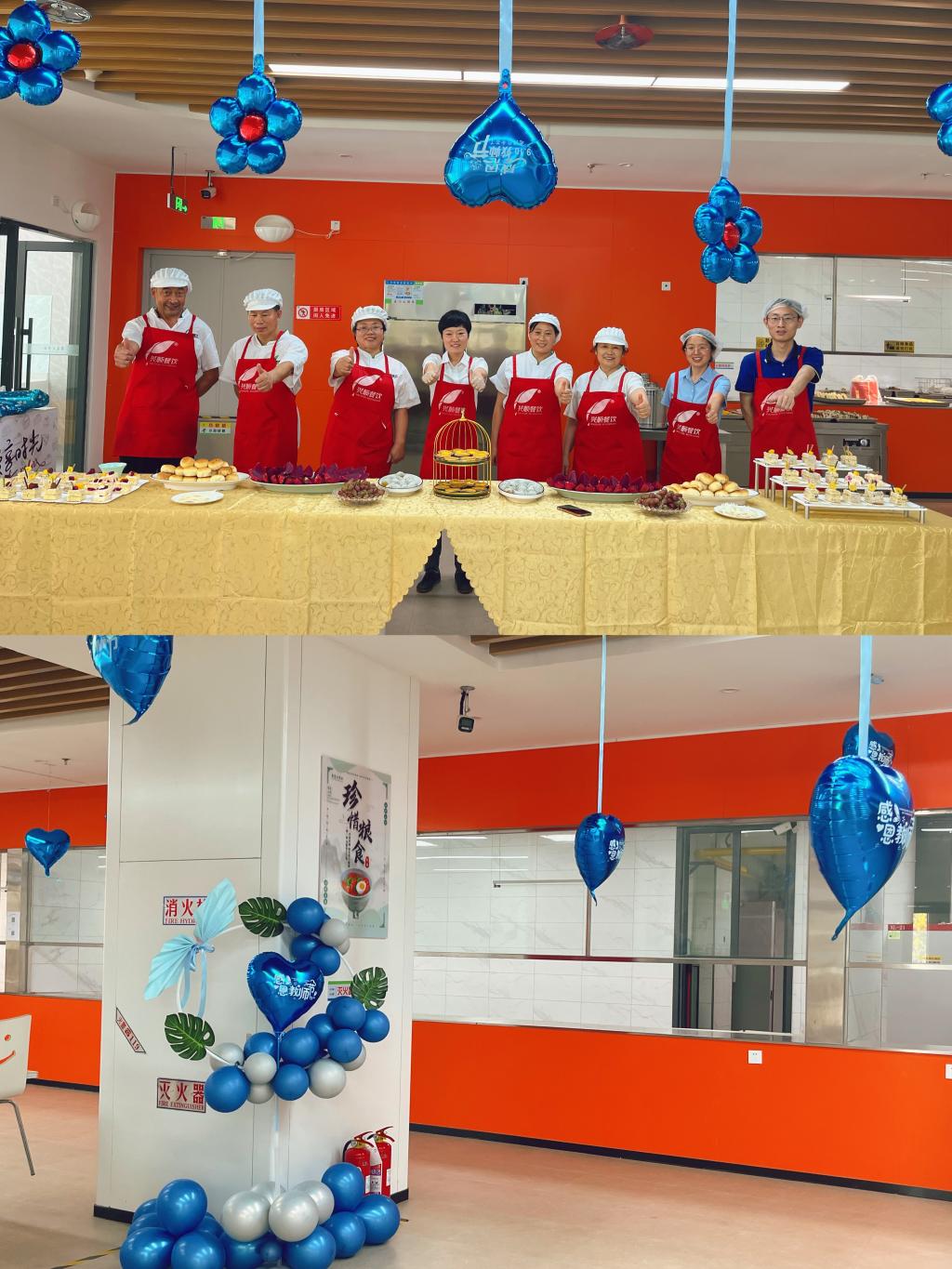 “教師節快樂!”“老師,您辛苦了!”一個個印著祝福的氣球擺放在食堂就餐區,十分醒目,濃郁的節日氣氛感染了每一位前來就餐的老師。食堂精心安排了今日的午餐,既有種類豐富的菜品,又有樣式新穎的甜品蛋糕、新鮮可口的當季水果,同時打餐時一句簡單的“教師節快樂”的祝福讓每位就餐老師臉上都掛滿了笑容。老師們紛紛表示,這午餐吃在嘴里、暖在心里。
