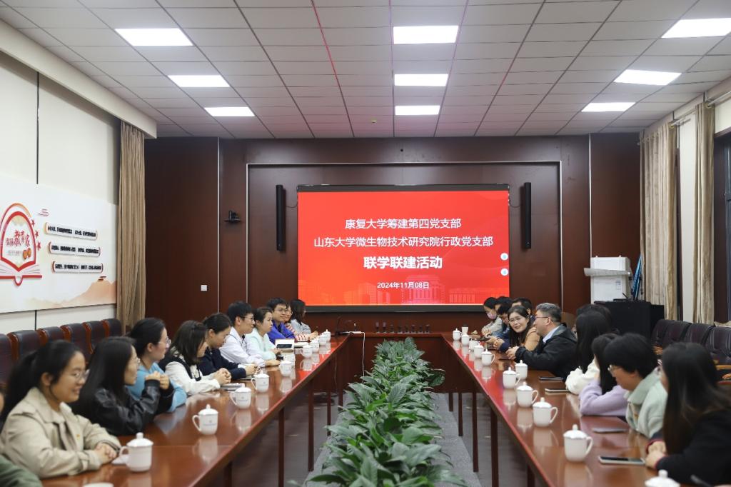 11月8日下午,康復大學籌建第四黨支部與山東大學微生物技術研究院行政黨支部在山東大學青島校區聯合開展了“黨建引領科研創新,攜手共筑學術繁榮”的主題黨日活動。此次活動旨在通過參觀交流、聯學聯建等形式,加強兩個黨支部之間的黨建交流與合作,共同推動科研創新。