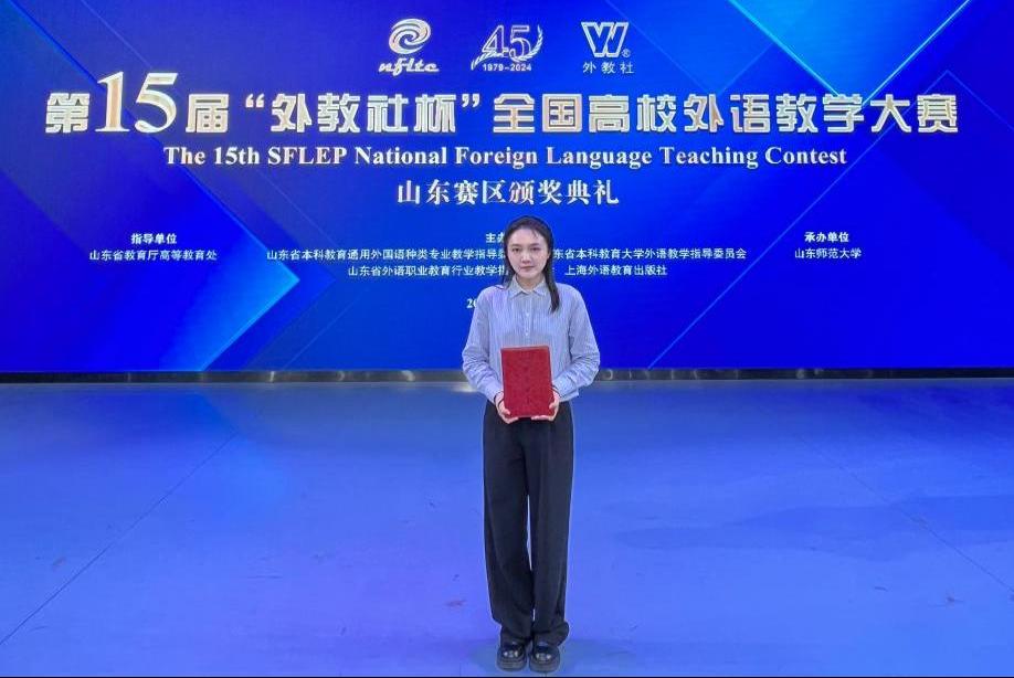 5月12日,第15屆“外教社杯”全國高校外語教學大賽山東賽區決賽在山東濟南落下帷幕,我校公共教學部韓雪子、鄒紹艷、段芳芳組成的教學團隊喜獲本科大學英語組三等獎。