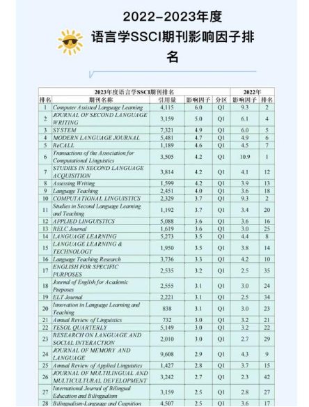 根據JCR于2024年6月最新公布的SSCI期刊信息,Computer Assisted Language Learning的影響因子為6,在語言學領域的194份期刊中排名第一,該期刊也是中科院一區(top)期刊。公共教學部外語教研室鄒紹艷副教授為本文第一作者,康復大學為本文第一單位。