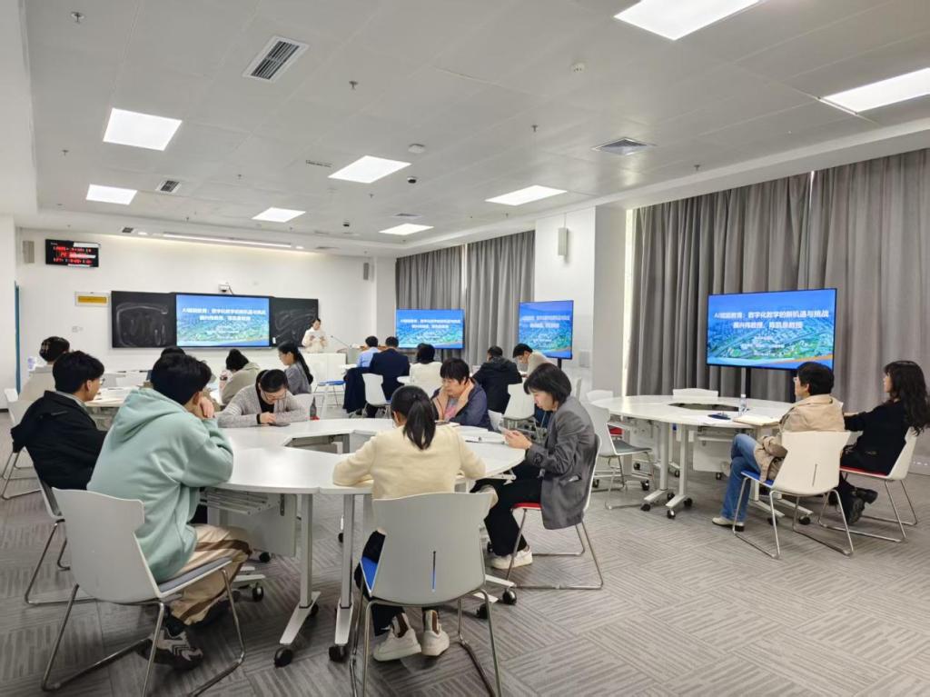 在圓桌討論環(huán)節(jié),師生們圍繞“AI技術(shù)落地的倫理邊界”、“教師角色轉(zhuǎn)型”、“教育資源公平性”等熱點(diǎn)問(wèn)題展開(kāi)深入交流,通過(guò)圓桌對(duì)話碰撞思想,交流AI助力教學(xué)的心得體會(huì),共議挑戰(zhàn)與未來(lái)發(fā)展路徑。