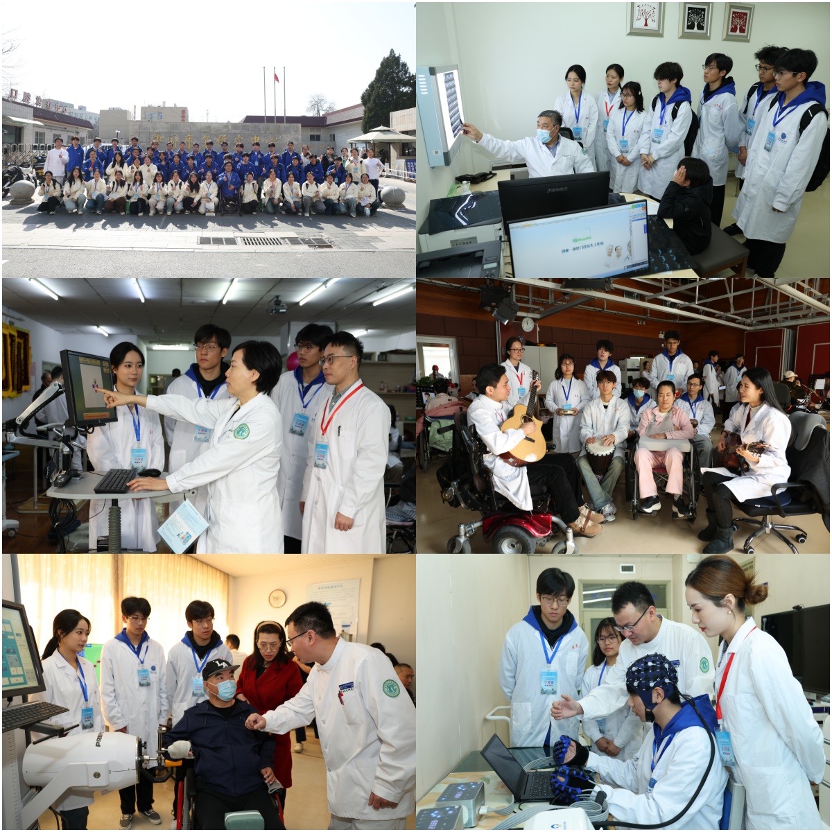 在中國康復研究中心(以下簡稱中康),學生分組進入參觀了醫院特色科室,通過觀察臨床案例研討、操作智能康復設備,體驗康復臨床工作。中醫傳統療法與音樂治療等跨學科項目的體驗,進一步拓寬了師生對康復技術融合應用的認知邊界。康復臨床現場讓同學們直觀感受到本專業的魅力與意義、極大地激發了同學們對專業知識的學習熱情。