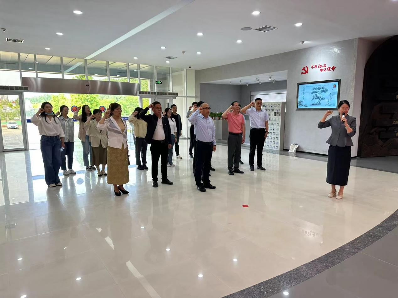 在講解人員的帶領下,黨員同志們先后參觀了5個展示區,通過裸眼3D、環幕觀影等高科技方式,由眼及耳入腦入心,360度全方位體驗警示教育。活動最后,面對莊嚴的黨旗,全體黨員干部重溫了入黨誓詞。